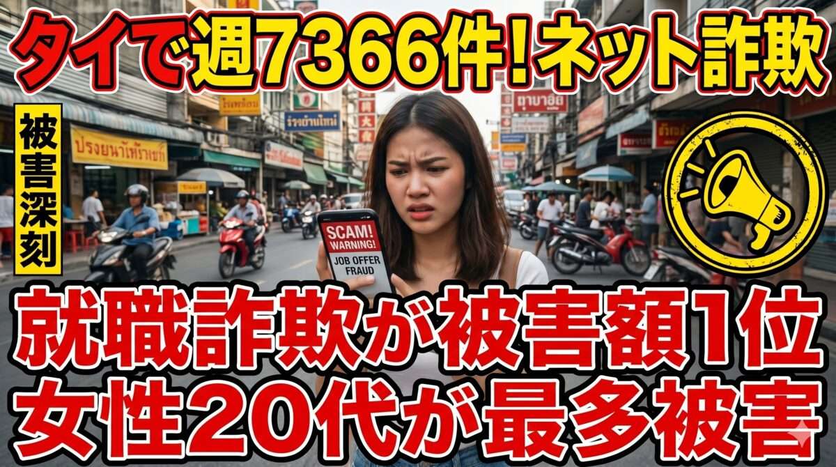 タイのサイバー犯罪対策センター(ACSC)は、3月29日〜4月4日の週間統計を発表し、オンライン詐欺の報告件数が7,366件、被害総額が4億7,981万バーツ(約21億円)に達したことを明らかにした。今回の統計で「就職詐欺」が初めてすべての詐欺類型の中で被害額1位に躍り出たことで、社会的な衝撃を与えている。